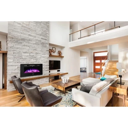 Der elektrische Kamin überzeugt durch sein wirklichkeitsnahes Kaminfeuer. Die Lichtprojektion erzeugt ein realistisches Flammenspiel. Der spektakuläre Glut-Effekt (mittels LED-Beleuchtung) ist in drei verschiedenen Farben separat wählbar.