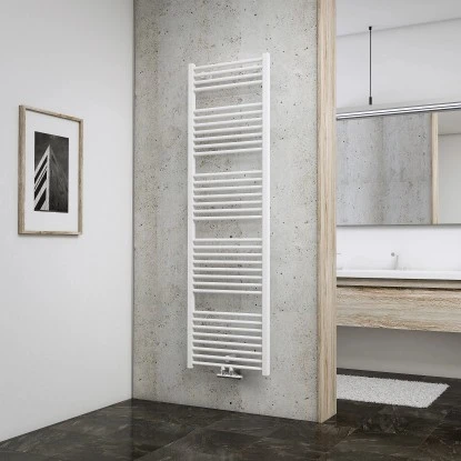 Der Heizkörper Turbo mit Mittenschanschluss von Schulte erscheint optisch im Look eines klassischen Badheizkörpers. Technisch hingegen überzeugt er mit moderner, energiesparender Heiztechnik: Der schlanke Badheizkörper besitzt viele schmale Querverstrebungen und wird von nur geringfügig stärkeren Seitenrohren stabilisiert. An den zahlreichen Querverstrebungen können Handtücher wunderbar aufgehangen und getrocknet oder gewärmt werden.