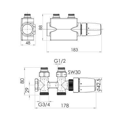 Mit dieser Mittelanschlussgarnitur mit Blende des Herstellers Herz erhalten Sie eine vollständige Garnitur für Ihren Design-Heizkörper mit Mittelanschluss von Schulte. Alle Bestandteile des Sets werden in der Farbe Chromoptik geliefert und die Blende rundet die Optik des gesamten Heizkörpers ab.