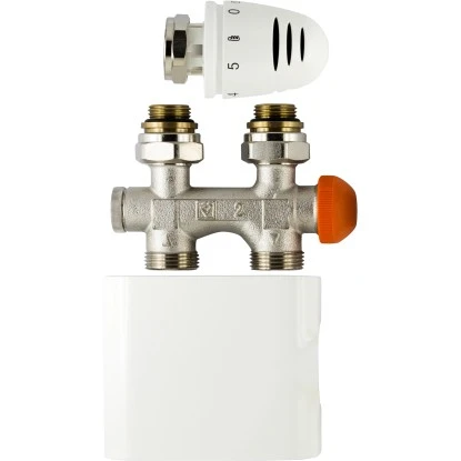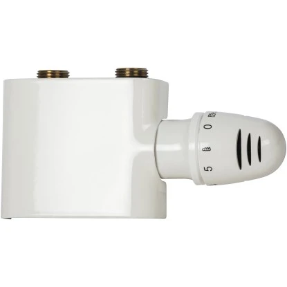 Die Mittenanschlussgarnitur Set Durchgang benötigen Sie, wenn Sie einen Bodenanschluss haben, d. h. die Rohre des Heizkörpers verschwinden im Boden. Der Vorlauf der Mittenanschlussgarnitur befindet sich links. Eine weiße Blende ist im Lieferumfang enthalten.