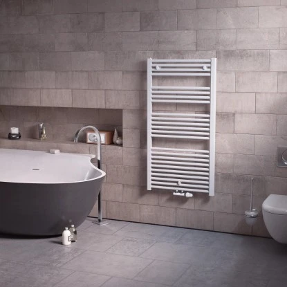 Dieser Ximax Badheizkörper kann innerhalb jeder gängigen Zentralheizung eingebaut werden und ist mit jedem handelsüblichen Thermostatventil oder jeder gängigen 50 mm Mittenanschlussgarnitur kombinierbar.