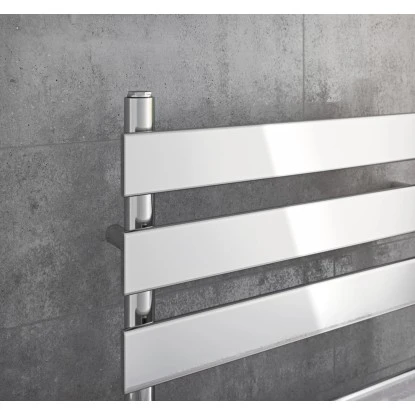 Die flachen verchromten in aufgesetzter Optik verarbeiteten Querpaneele verleihen dem modernen Badheizkörper C7 den Charme eines Paneelheizkörpers.