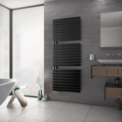 Die ausgewogene und harmonische Verteilung und Charakteristik der ovalen Horizontalprofile verleihen diesem Designheizkörper die eigene, moderne Optik. Zusätzlich ideal als Handtuchwärmer und Handtuchtrockner verwendbar.