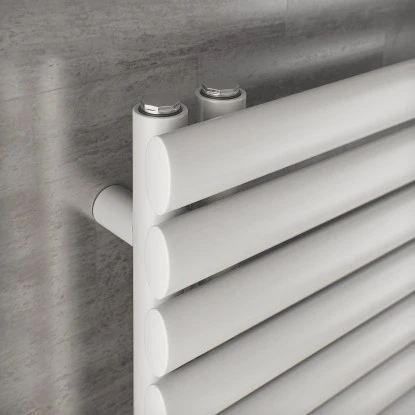 Die ausgewogene und harmonische Verteilung und Charakteristik der ovalen Horizontalprofile verleihen diesem Designheizkörper die eigene, moderne Optik. Zusätzlich ideal als Handtuchwärmer und Handtuchtrockner verwendbar.